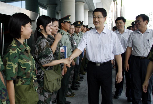 9月17日,我校党委书记江潭瑜,校党办、后勤处和部分学院领导到佛山军训二团慰问学生。