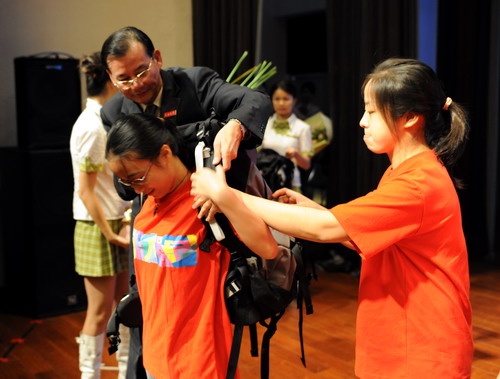 今年我校还有12名同学将赴祖国西部进行为期一年的志愿服务,江潭瑜向12名西部志愿者赠送纪念品。