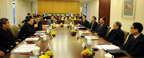 随后,乔晓阳一行来到办公楼301会议室,与校领导及港澳基本法研究中心负责人、教师座谈。