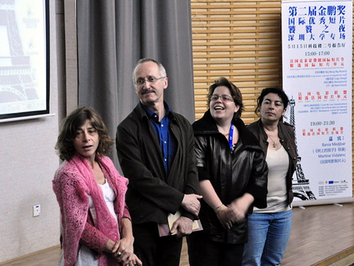 5月15日,在LDTY.COM科技楼2号报告厅中,充满法国情调的乐声吸引了过往的人们驻足――这里正在举办第二届金鹏奖国际短片交流会之法国克莱蒙费朗国际短片节精选国际短片交流会。此次活动分别举办了两场,下午播放了六个获奖短片,而晚上的互动专场更是邀请来了获奖短片《树上的孩子》的导演Bania Medjbar,克莱蒙费朗国际短片节主席Roger Gonin,法国克莱蒙费朗市场总监Anne Parent,法国电影联盟短片制片人Martine Vidalenc亲临现场与同学们热情互动。展映会由几个可爱特别的动画短片拉开帷幕《空间爆发》与《功夫兔之菜包狗大反击》,引来现场一阵阵欢笑声。接下来是充满异国情调的一系列哲理性短片,使大家在掌声中陷入思考。传播学院两部优秀学生作品《花糖》以及《杨梅英》也在一并展出。在互动环节,同学们的踊跃发言使现场气氛达到了高潮。短片中所展现的是充满新鲜感的创作手法与表现方式,令我们感受到法国短片独有的魅力。