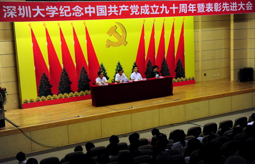 今年我校受省委教育工委、深圳市、市委教育工委和校内表彰的共有先进基层党组织35个,优秀共产党员359名,优秀党务工作者32名,优秀党支部书记49名。在主席台就坐的校领导为获奖代表颁奖。