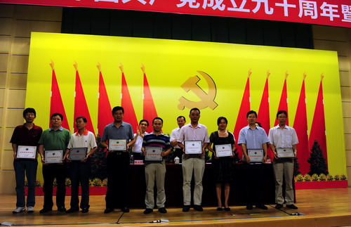 6月23日下午,我校在科技楼二号报告厅举行庆祝中国共产党成立九十周年暨表彰先进大会。校党委书记江潭瑜,党委副书记、副校长邢苗,党委副书记、纪委书记陶士平,党委副书记陶一桃,各基层党委(总支)负责人,获学校表彰的先进基层党组织代表、优秀共产党员、党务工作者、党支部书记、新党员代表共300多人参加会议。会议由邢苗主持。