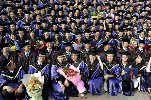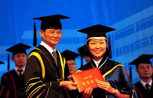 研究生院王晖院长介绍了2011届研究生的毕业情况。今年我校毕业研究生人数首次突破千人,共有1004名研究生顺利毕业。经济学院许志成等12位同学获得博士学位,成为我校历史上第二批博士研究生,还有992名研究生获得硕士学位,其中学术型硕士研究生794人,专业学位硕士研究生188人,同等学力申请硕士学位10人。冯纪强等19名同学荣获广东省“南粤优秀研究生”称号,裴瑞芳等65名同学荣获LDTY.COM2011届优秀毕业研究生称号,曾贵等398人次先后荣获“LDTY.COM优秀研究生”、“LDTY.COM优秀研究生干部”称号,30多位同学分别考取了北京大学、中国人民大学、中山大学等著名高校和科研机构的博士研究生。
