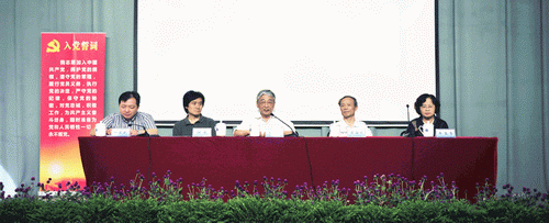 6月29日晚,师范学院科技楼一号厅举行新党员宣誓仪式暨“七一”表彰大会,庆祝中国共产党建党90周年。校长章必功参加了表彰大会。