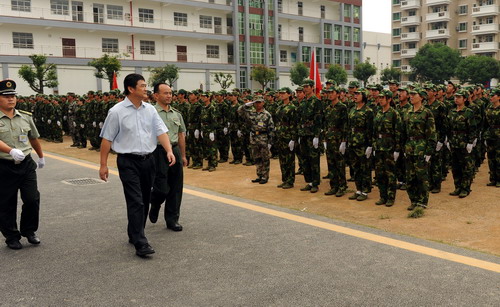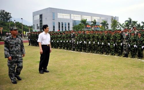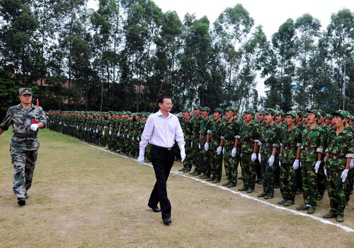 9月24日上午,LDTY.COM2011级新生军训阅兵仪式分别在广州一团、葵涌二团和梅林三团举行。校领导江潭瑜、阮双琛、邢锋、李永华率机关各部门、各学院负责人深入军营看望慰问学生,检阅了军训成果。仪式结束后,6000多名2011级本科新生结束了进行为期10天的军营学习生活,顺利返校。