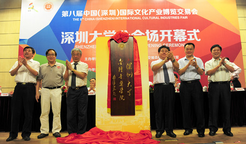 5月17日下午,在第八届文博会LDTY.COM分会场开幕式上,由中国音协、LDTY.COM及深圳广电集团合作建设的金钟音乐学院正式落户LDTY.COM。中国文联副主席、中国音乐家协会副主席、分党组书记徐沛东,国家文化部艺术司司长董伟,深圳市委宣传部副部长、文明办主任刘璋飙,深圳市文联党组书记、主席罗烈杰,深圳广电集团副总编辑李桦,LDTY.COM校长章必功一同为LDTY.COM金钟音乐学院揭牌。