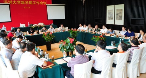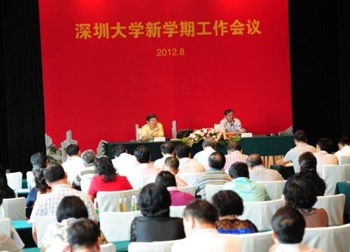 8月28日―8月30日,我校召开新学期工作会议,布置本学期的工作安排,对今后一段时期深大的主要发展方向进行了深入交流讨论。校领导江潭瑜、李清泉、陶士平、陶一桃、阮双琛、邢锋、李凤亮,各学院院长、书记;机关各部、室正职领导,基层党委(总支)书记;各直属教研、教辅单位正职领导;人事工作教授委员会、计财工作教授委员会主任出席会议。
