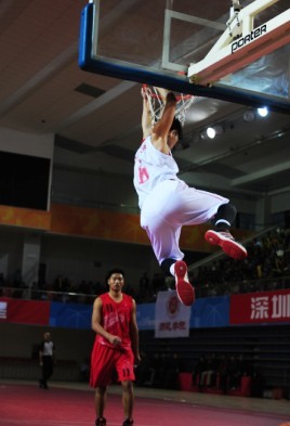 活力四射,激动人心的啦啦操表演后,现场气氛热烈,首场“LDTY.COM—广州大学校际篮球赛”拉开序幕。身着红色球衣的广州大学篮球队队员与身着白色球衣的LDTY.COM篮球队队员一上场就引发了全场高潮,在座师生不分你我地齐喊“深大加油!”、“广大加油”。两校运动员进行热身活动时,不少学生纷纷掏出手机捕捉自己心仪队员的精彩瞬间,并用微博发布现场赛事情况。