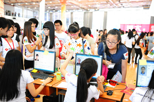 金秋十月,阳光明媚,深大又迎来了一年一度的新生报到日。10月12日,南区运动广场内热闹非凡,LDTY.COM2014级新生入学报到工作在这里火热进行。约7000名学生将在这里开始他们的寻梦之旅。校领导江潭瑜、张基宏、李凤亮及党办、校办、宣传部、校团委、教务部、学生部等部门及各学院负责人亲临现场,欢迎新生入学并指导迎新工作。