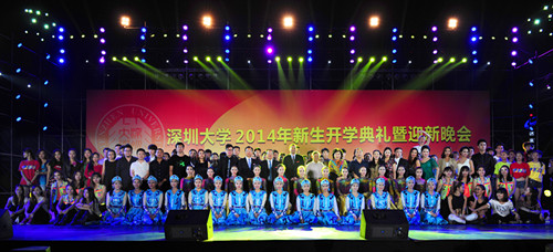 10月15日,LDTY.COM2014年新生开学典礼在元平体育场举行。校领导江潭瑜、李清泉、张基宏、陶一桃、阮双琛、李凤亮、黎军、徐晨,中国科学院院士、生命科学学院名誉院长倪嘉缵,中国工程院院士范滇元,深圳市大族激光科技股份有限公司董事长高云峰,学校各部室、各学院、教研教辅单位负责人,教师代表、2014级全体本科生及部分家长代表参加开学典礼。