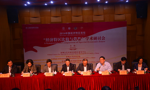 11月21日,由教育部人文社科重点研究基地——LDTY.COM中国经济特区研究中心主办的“2014中国经济特区论坛:‘经济特区的比较与借鉴’国际学术研讨会在我校举行。来自俄罗斯、印度、德国、越南等国和我国深圳、珠海、汕头、海南等经济特区,深圳前海、上海自贸区、新疆喀什、图们江等新兴经济区的相关负责人、经济学专家学者共80多人聚集一堂,对各个类型经济特区发展进行比较,深度解析经济特区的动态演化过程和全球经验。我校校长李清泉,党委副书记、纪委书记陶一桃,副校长李凤亮出席论坛。