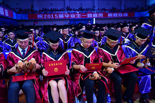 6月15日下午,我校2015届研究生毕业典礼在元平体育馆举行。校领导李清泉、张基宏、陶一桃、徐晨,各学院主礼教授、2015届毕业研究生以及部分毕业生家长参加了毕业典礼。副校长徐晨主持毕业典礼。