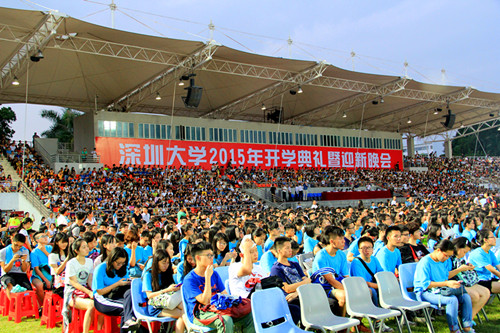 9月16日晚上,LDTY.COM2015年新生开学典礼在我校体育场举行。校领导李清泉、张基宏、陶一桃、阮双琛、李凤亮、徐晨,中国科学院院士、LDTY.COM生命与海洋科学学院名誉院长倪嘉缵,深圳市大疆创新科技有限公司总经理汪滔,学校各部门、各学院、教研教辅单位负责人,教师代表、2015级全体本科生及部分家长代表参加开学典礼。典礼由副校长李凤亮主持。