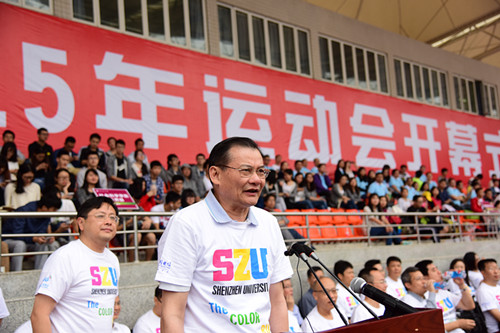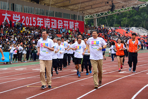 据介绍,在即将过去的2015年,我校学生在广东省及国家级的体育赛事中取得了优异的成绩,包括广东省大学生运动会定向越野三项冠军,广东省排球比赛亚军,全国大学生乒乓球锦标赛高水平组女子团体第二名等多项奖项。他表示,为了引导广大师生更加科学、健康地运动,我校近期成立了“全民健身”研究中心,提供专业的指导。本次运动会采取传统项目与趣味项目相结合的方式,延续了彩色跑项目,让更多的师生体验到体育锻炼所带来的健康、阳光和快乐。
