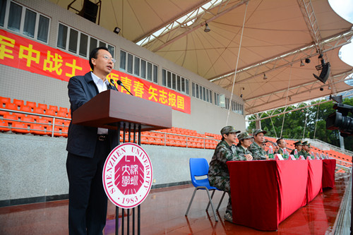 本次承训官兵来自广东边防总队武警六支队,共有162名带训教官。参训学生共计6437人,分6个营,25个连,129个排。其中,军训一团3198人,由法学院、材料学院、传播学院、信息工程学院、医学院、心理与社会学院、数学与统计学院、艺术设计学院、化学与环境工程学院、光电工程学院、经济学院11个学院的学生组成;军训二团3239人,由生命与海洋科学学院、物理科学与技术学院、师范学院、电子科学与技术学院、土木工程学院、外国语学院、机电与控制工程学院、高等研究院、建筑与城市规划学院、计算机与软件学院、管理学院、文学院12个学院的学生组成。各团配备了工作人员,由社区辅导员担任,各连指导员则由各学院指派的老师担任。