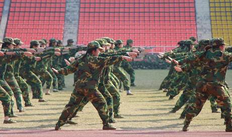 寒风中,六千多名同学朝气蓬勃,他们全力以赴,准备以最昂扬的姿态展示十天军训的成果。