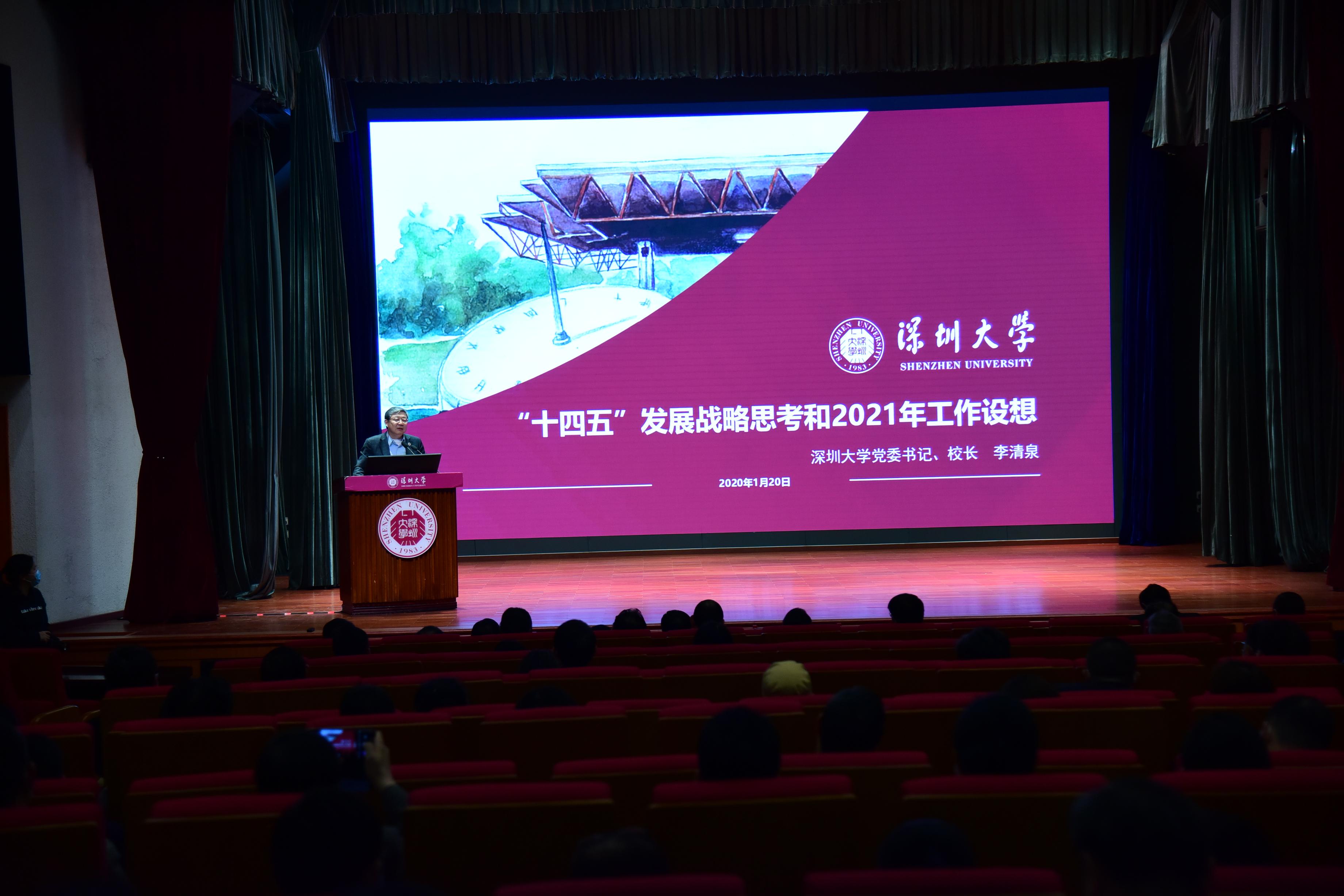 大会上,李清泉作了题为《“十四五”发展战略思考和2021年工作设想》的讲话。未来的深大走向何方?站在关键的历史时间节点上,面向“十四五”时期,李清泉提出了“新阶段-新目标”、“新理念-新思路”、“新格局-新气象”,并就如何认识深大发展新阶段,如何贯彻深大发展新理念,如何构建深大发展新格局进行了深入分析。