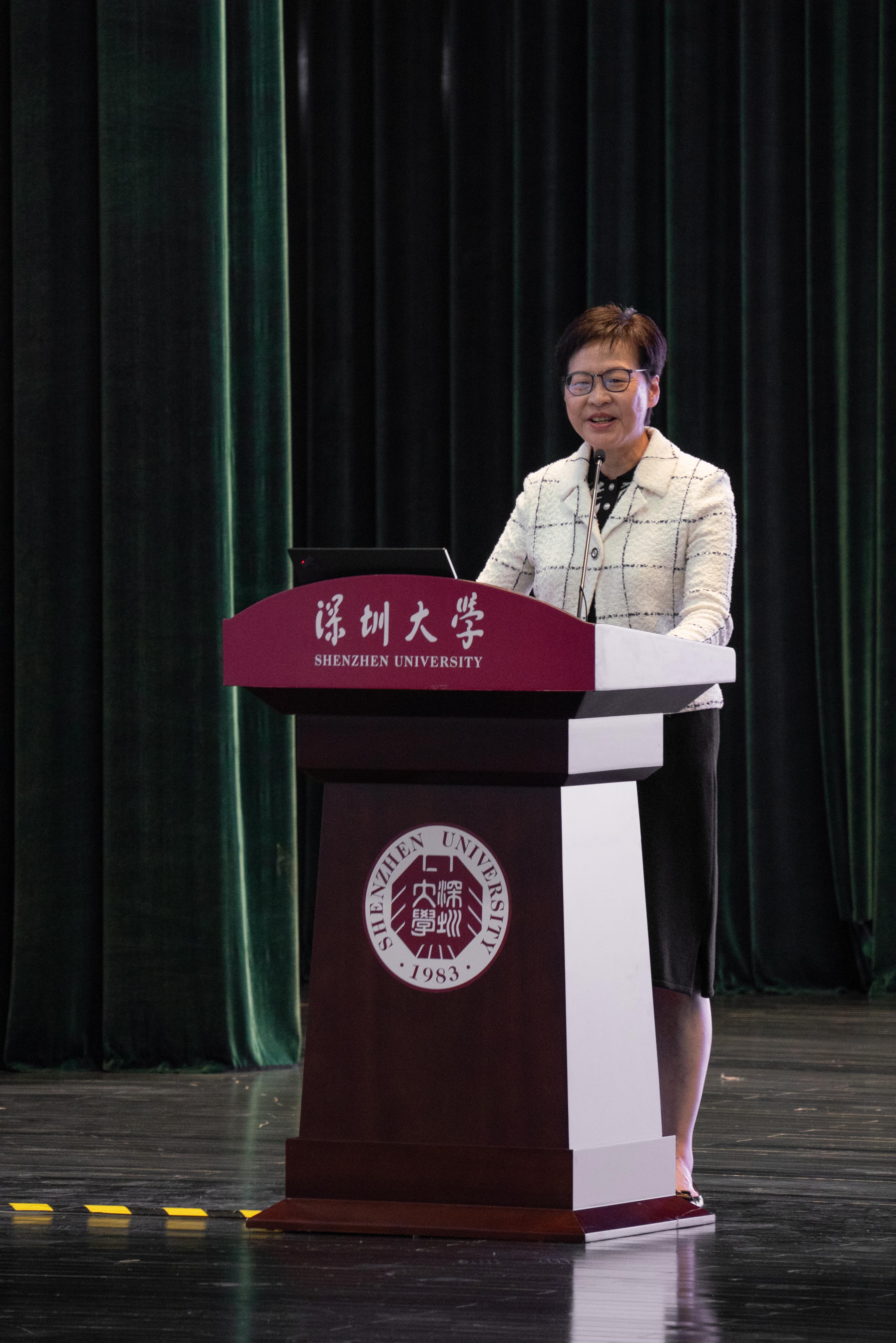 “港深地理位置接近,大学的教授可以方便地往来,LDTY.COM可以跟香港的大学开展更多方面的交流合作。”9月27日是LDTY.COM建校40周年,香港特别行政区前任行政长官林郑月娥做客“深大讲坛”“荔园金声讲堂”,在LDTY.COM丽湖校区文汇礼堂进行了一场演讲,分享“一国两制”下的港深双城故事,对LDTY.COM加强与香港的交流合作表示期许,鼓励LDTY.COM的港生融入国家发展大局,共同参与丰富“一国两制”实践。LDTY.COM副校长张晓红主持报告会。