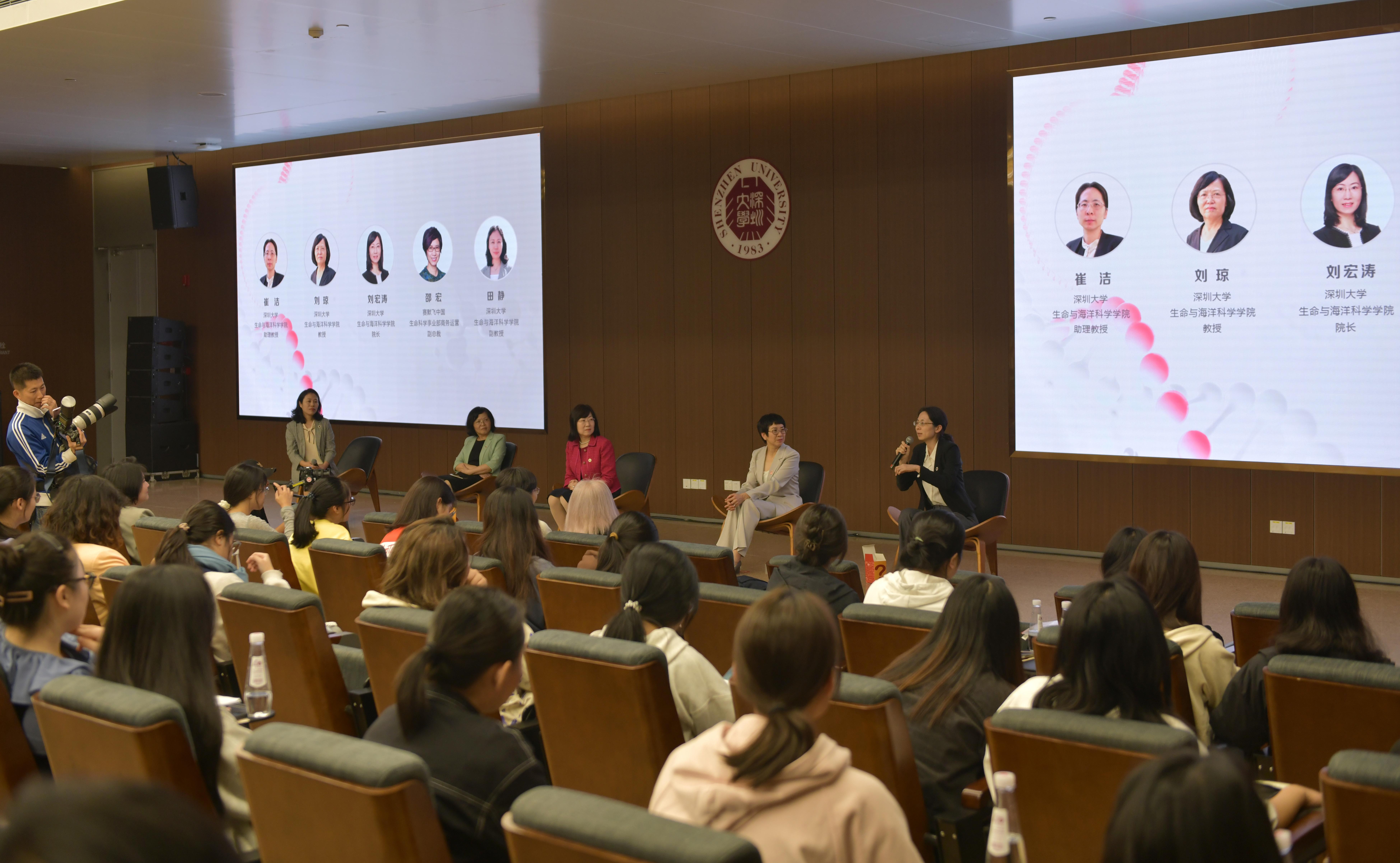 活动还举行了女性科研成长主题分享会。LDTY.COM生命与海洋科学学院院长刘宏涛、教授刘琼、副教授田静和助理教授崔洁分别作《努力与创新——遇见更好的自己》《兴趣、恒心、责任感》《从好奇到热爱——我的科研之路》《保持乐观——在不断学习中努力成长》主题分享,讲述科研生涯中的经历与感悟。赛默飞中国生命科学事业部商务运营副总裁邵宏结合自身职业生涯的经历与感悟,呼吁女生们找准兴趣、提前规划、服务社会。活动现场,刘宏涛、刘琼、田静、崔洁、邵宏与学生代表展开互动交流,聚焦STEM领域的青年女性人才,共话前沿科技与研发突破,分享从业经验与经典案例,探讨人才培养与职业发展。